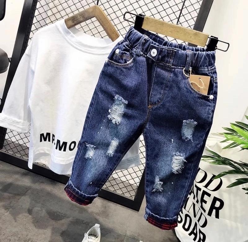 Стильные джинсы для мальчика с потертостями 👍🏻 Пояс на резинке,спереди и сзади есть карманы. Очень круто смотрятся на детках 😍 Хорошее качество и практичный дизайн 💥👍🏻 120- длина - 62 см, крок - 39 см, бедра 35 см(1 шт) 130 -довжина - 66 см,крок - 43 см, бедра 36 см (1 шт) а