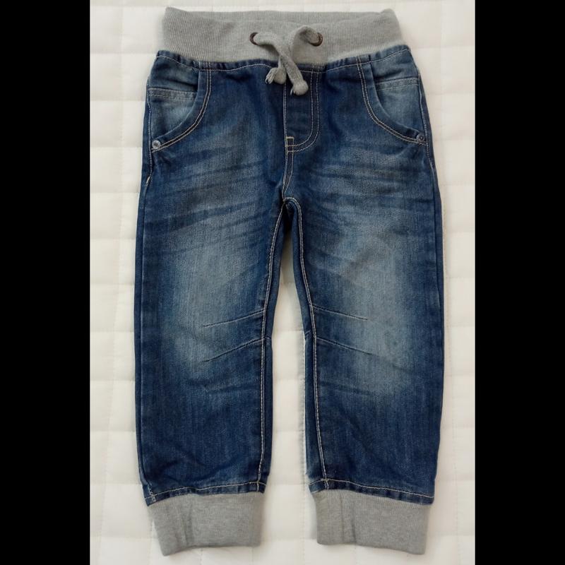 джинсы хлопок 100% .без змейки.4 кармана.пояс резинка тканевая + шнурок затяжка на коленках выточки низ также резинки.на 2-3 года по бирке.замер:25.5- резинка*53.5- длина*10- низ резинки.состояние хорошее.