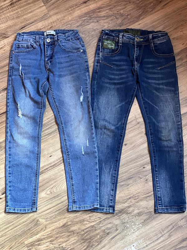 Джинсы, не широкие и не сильно узкие. На худи мальчиков. Мягкие, приятные к телу. У обоих есть резинка для стяжки и регулировки в поясе. По биркам размеры разные но мы носили на смену в одном и том же возрасте, да и по замерам видно что они одинаковы. Состояние обоих идеально. Светлые - 350 грн Размер: 8 лет (на бирке). длина бокового шов 75см, длина внутреннего шов 56 см, пояс 30см, бедра 36см. Темные - 350 грн Размер: 6 лет, 116 рост (на бирке). длина бокового шов 75см, длина внутреннего шов 54см, пояс 30см, бедра 35см.