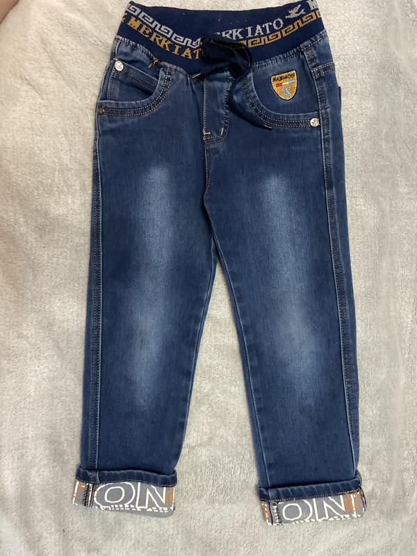 Детские джинсы, пояс на резинке. Длина 58 см, ПОТ 24 см, тянется до 28 см. Стан новых.