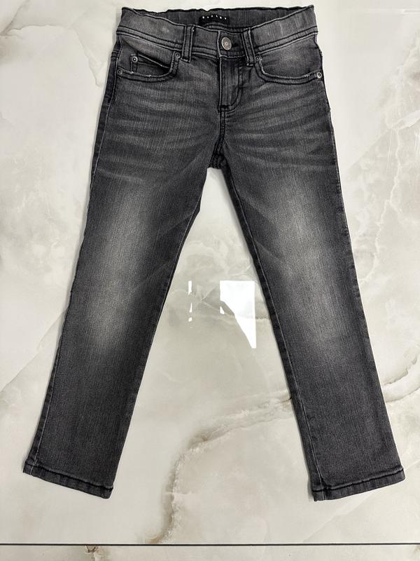 Джинсы в сером цвете качество супер. Состояние идеальное. Есть утяжки по талии. Размер 4-5 лет. Замеры на фото. Джинс тянется.