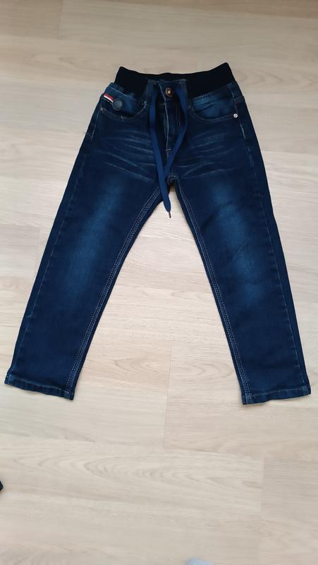 Джинсы в хорошем состоянии. На широкой резинке, хорошо тянется, дополнительно шнуровка и пуговица, застегиваются на молнию. Карманы спереди и сзади. Замеры: длина 64 см, шаг 43 см, в талии п/о 24 см.