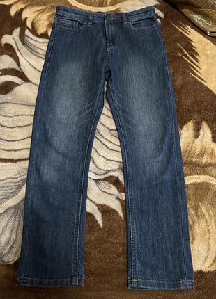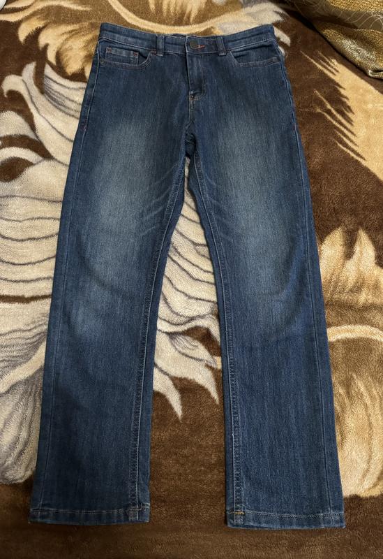Джинсы полномерные (regular) в отличном состоянии на рост 140 см. Есть утягивающая резиночка в поясе Длина 85 см Стегна 41 см Пояс 35 см Внутренний шов 63 см