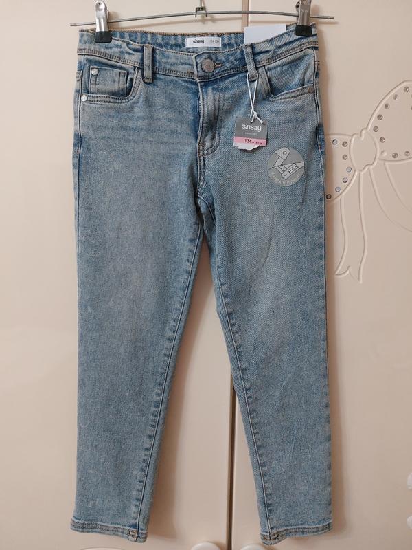 Новые джинсы для мальчика.Нам не подходит размер.Легкий вареный эффект.Бренд Sinsay.пояс регулируется.Материал хлопок,эластан. 134 размер 8-9 лет. Смотрите замеры. Гарно тягнуться Длина 74 см Полуобхват талии 32 см + регулируется Полуобхват в бедрах 36 см