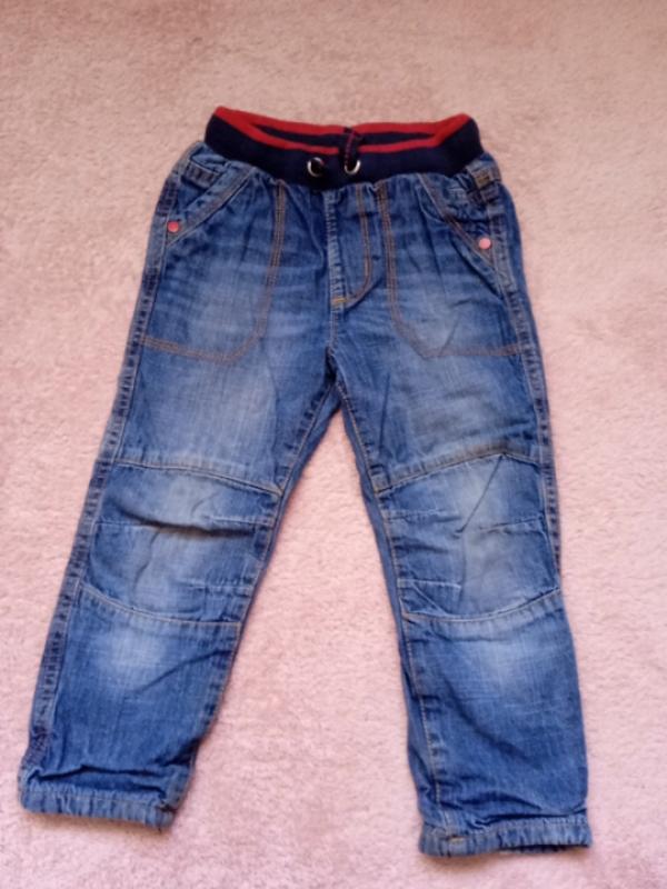 Джинсы фирмы George для мальчика на возраст 2-4 года.По наборке 2-3 но будут и на больше.Стан. хорош, но есть нюансы (отражаются на последних фото). Можно для двора.Длина 55 см, пояс 22, тянется до 30, посадка 20 см. Внутри на подкладке. Покупка делайте обзорное.