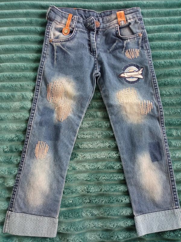 Детские джинсы на рост 98 см длина по боковому шву 57 см длина по внутреннему шву 40 см ширина в поясе 26 см ширина в стегнах 30 см высота посадки 19 см