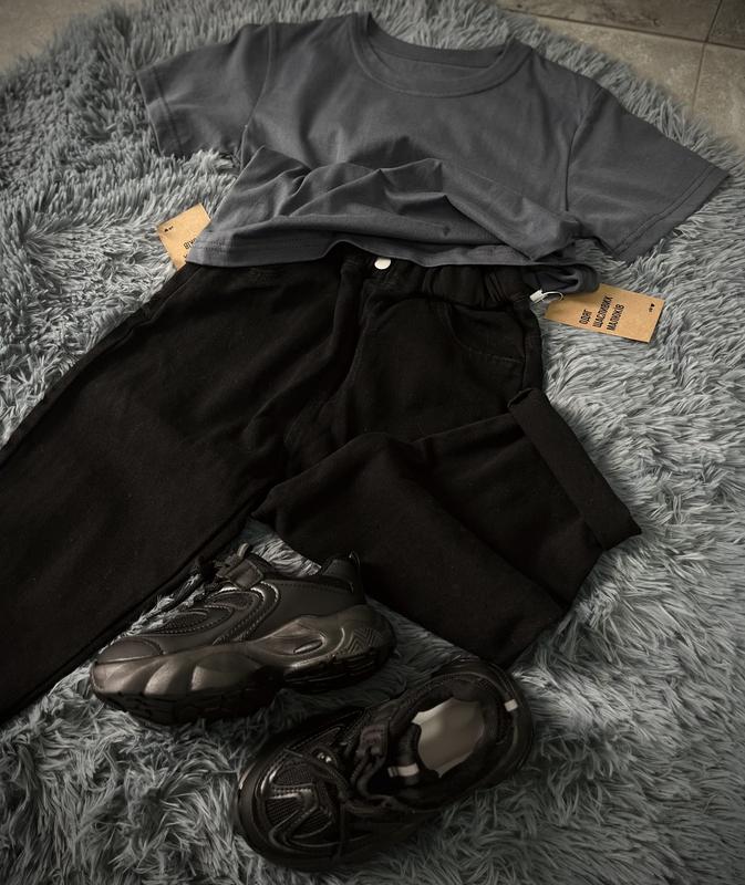✨Стильний і зручний повсякденний комплект для дітей, ідеальний для активних прогулянок або щоденного носіння. ✨Складається з трьох елементів: ✨Футболка: м’яка, бавовняна футболка насиченого сірого кольору з круглою горловиною. ✨Ціна: 260 грн. ✨Джинси: чорні штани прямого крою з еластичним поясом і кишенями. (120,130,140,150) ✨Ціна: 710 грн. ✨Кросівки: чорні спортивні кросівки з масивною підошвою, які забезпечують гарне зчеплення та підтримку стопи. (29,30) ✨Ціна: 780 грн.