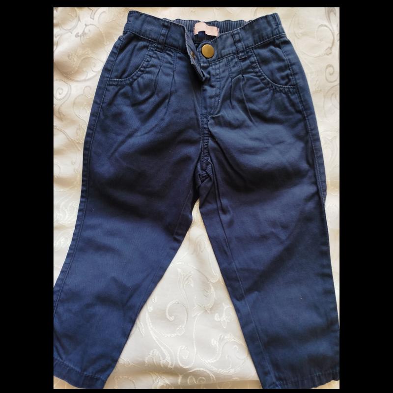 Коттоновые штанишки, синего цвета, нюансов нет,размер на год-полупора