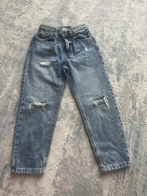 Джинси в ідеальному стані.Пояс на резинці.До низу завужені,стильно пошиті,зручні.Голубий коліл має рваності ,стильні.