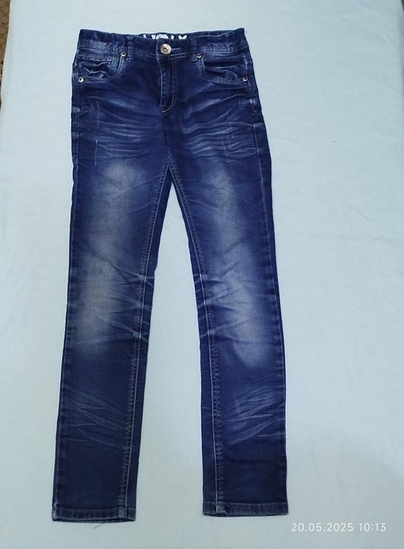 Очень классные стильные зауженные джинсы на ребёнка 9-10 лет в очень хорошем состоянии. Полуобхват по поясу регулируется внутренней резинкой на пуговице и максимально тянется до 33 см, высота посадки 20 см, длина по внутреннему шву штанины 65 см, длина по внешнему шву штанины 85 см. Ткань 90% хлопок 8% полиэстер 2% эластан, тянется. Модель 6215Б