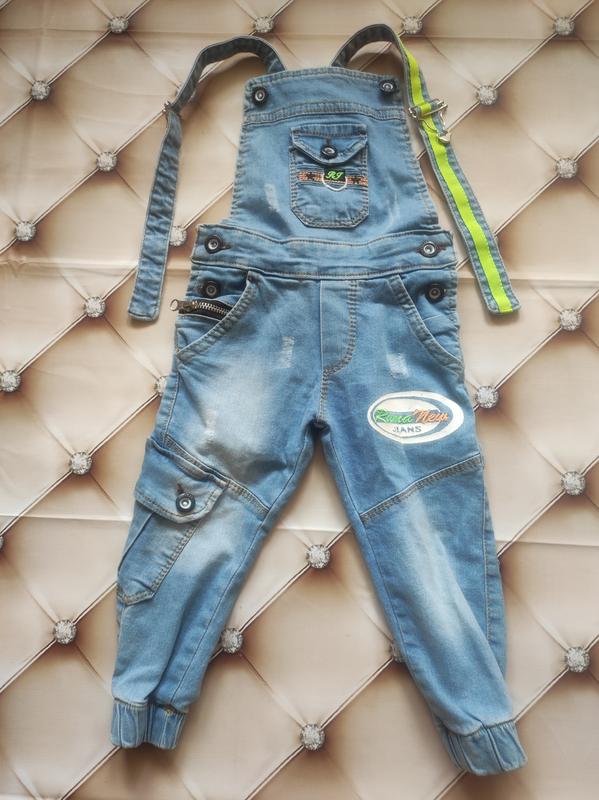 крутой,легкий джинсовый комбез, надели один раз. Он как унисекс можно как мальчику так и девочке.Размер где-то 80,86 возможно 92 в зависимости какой детёныш.