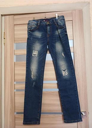 джинсы турецкого производителя, плотные,диры не сквозные, в новом состоянии длина-99см крок-76см пояс-38см поб-46см Цена-450грн В наличии есть много брюк и джинсов на парней всех возрастов. ЗАЩИТА НА МОЮ 7.0.5