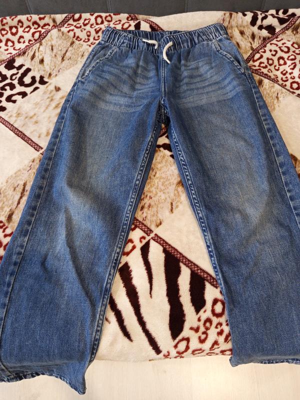 Джинси на резинці ,стан добрий ,є невелика затяжка ззаду на штанині ,видно на останньому фото.ПОпояса 30 см ,тягнеться до 39 см,довжина 87 см,ПОпопи 45 см .