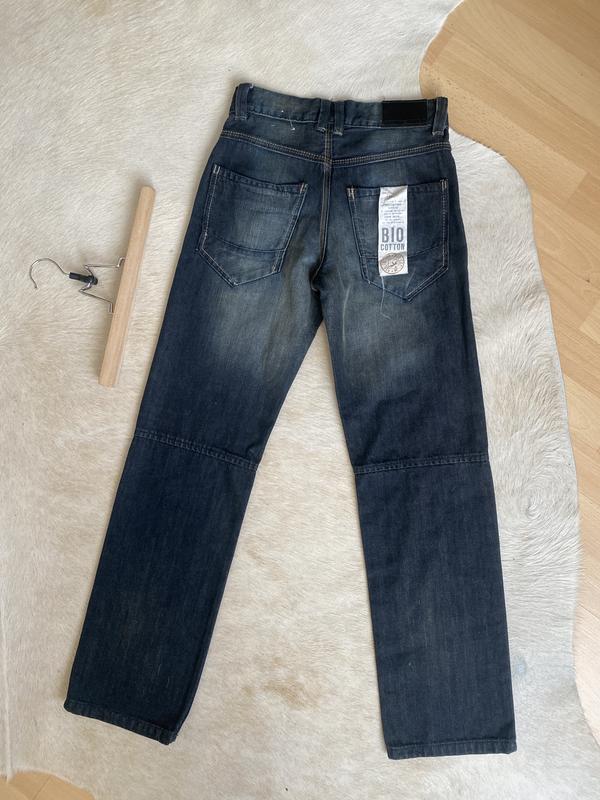 Стильні джинси на хлопчика прямого крою з ефектом потертості та легким ефектом бруду. 100% котон. Середньої щільності. По поясу присутня внутрішня стяжка на резинку. Стан нової речі. Пот 32 см. Поб 40 см. Д 95 см. Вп 24 см. Шн 18 см.