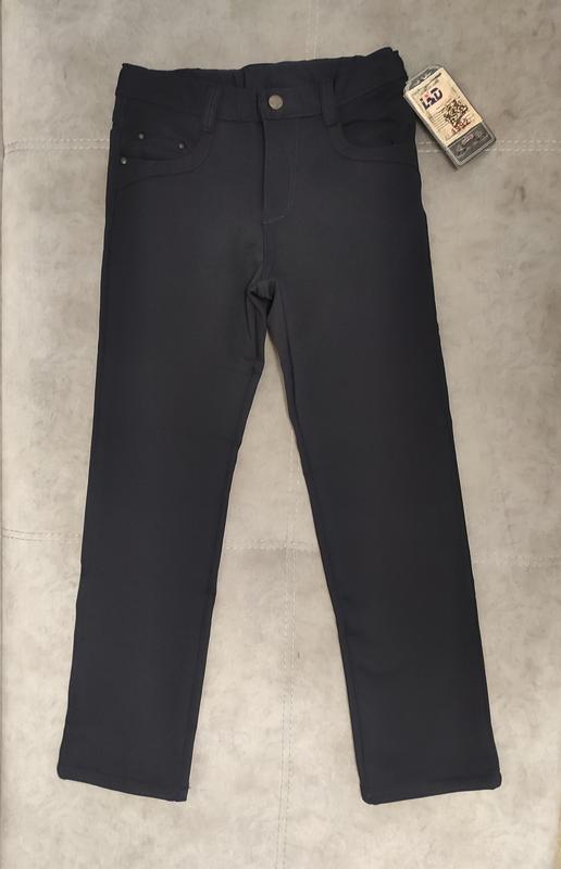 Джинсы на флисе темно-синего цвета. Длина 90 см, полуобхват пояса 34 см, есть утяжка.