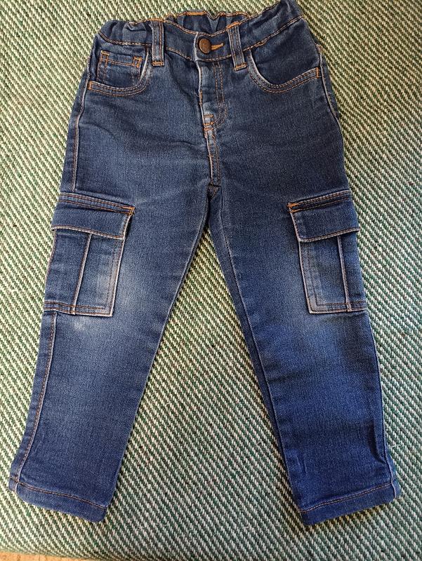 Джинси у відмінному стані) Дуже дуже зручні в носці та гарно виглядають на дитині. По талії регулюються резинкою. Штаніни внизу можна завернути. Розмір 92- на 1,5-2 роки Довжина - 51см Без дефектів.