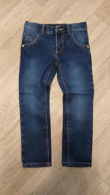 Новые джинсы, но без этикеток. Переросли так и не надев. Подойдут на худи ребенка. Есть зяжки с пуговицей на талии. Качество 100% коттон. Достаточно плотные. Для весны, осени идеально. Что касается возраста, смотрите замеры. Все дети разного роста, объемов. Замеры: НОТ 28 ПОБ 32 длина 65 внутр.довжина штанини 47 посадка спереди/сзади 20/22