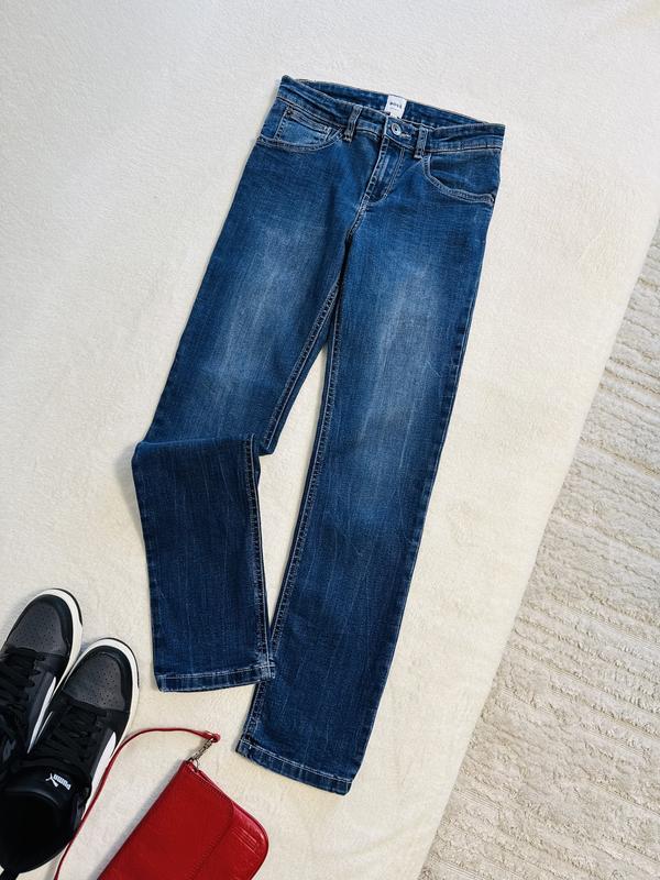 Джинси для хлопчика від Boss Розмір 12 р По поясу 34 см резинок нема По бедра 41 см Довжина 91 см Крок шов 67 см Штанка знизу 15 см 81% котон,17% полістер,2% еластан