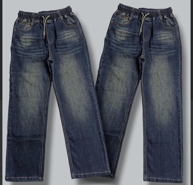 джинс плотний не грубий . В поясі широка резиночка + шнурівка До штанів йде ремінець . Колір темно синій з напиленням На зріст від 122 по 164 зріст . А до них ви у нас можете обрати також будь який світшот, бомбер , худі , футболку . Заміри : 6(116) довжина 69см крок 45см стегна 38 см 8(128) довжина 77см крок 52см стегна 40см 10(140) довжина 83см крок 57см стегна 43см 12 (152') довжина 90см крок 64 см стегна 46см 14(164 ) довжина 95см крок 69см стегна 49см