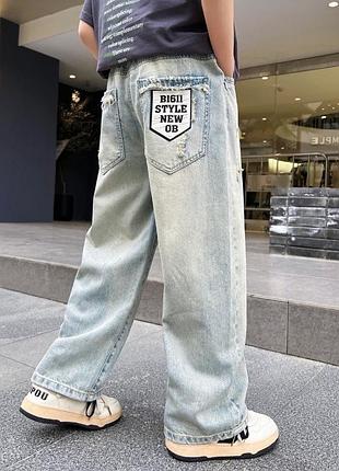 Новинка Весна 2026 Стильные джинсы для парня Спереди и сзади по 2 кармана З потертостями ✨ Пояс на резинке Очень круто выглядят 😍 Очень хорошее качество!Рекомендую 👍🏻 130- длина - 77 см, крок- 49 см, бедра 42 см,пояс - 22 см (3 шт) 140 - длина - 83 см, крок- 53 см, бедра 44 см,пояс - 24 см (5 шт) 150- длина - 90 см, крок- 59 см, бедра 45 см, пояс - 25 см (5 шт) 160- длина - 96 см, крок- 64 см, бедра 46 см,пояс - 25 см (5 шт)