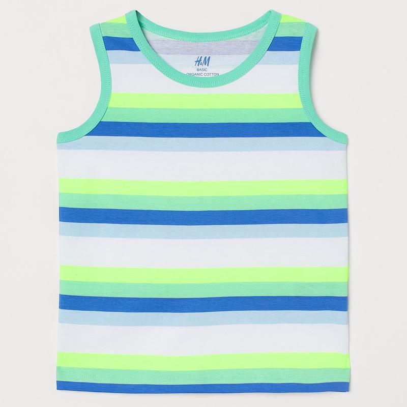 Майка для мальчика/трикотаж H&M на 4-6 лет на р.110/116. длина - 45 см, полуобхват под мышками - 33 см. Жилет из мягкого трикотажа из органического хлопка с рисунком и трикотажной резинкой по горловине и проймам. Состав. Хлопок 100%.