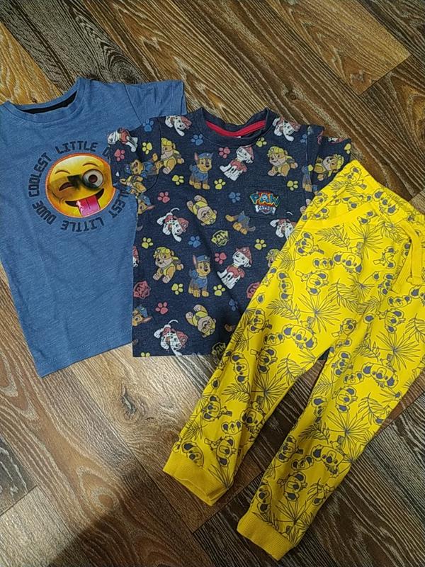 Состояние -идеальный цена указана за все:два футболочки + штаны размер -92/98 замеры: футболки: длина -38 и 42 см пог-30 см штанишки: долж.-52-53 см крок-35 см пот-26 см (стягивается) Укр или Новая почта