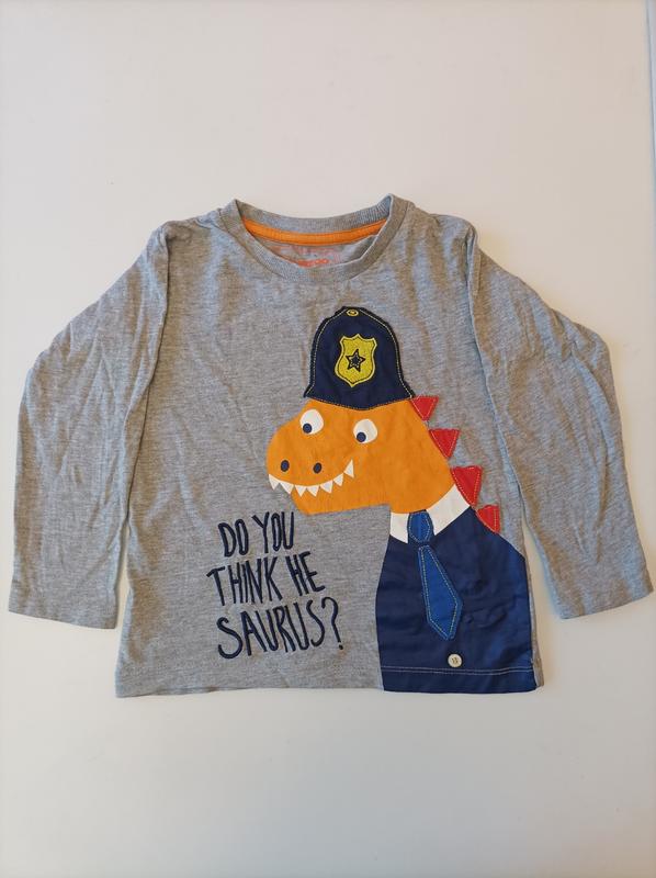 Футболка с длинным рукавом и ярким рисунком динозавр) Есть недостаток на рукаве - небольшие дырочки (указала на последнем фото).