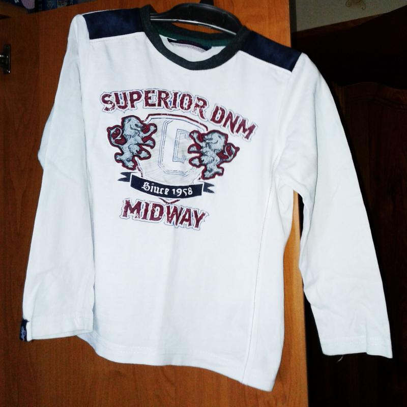Реглан Chicco 4-5. 100% бавовна. Виглядає ошатно і стильно. Довжина 39 см, напівобхват 34 см, довжина рукава 37 см. Загальний стан дуже добрий. Нюанси: на лівому рукаві є світло-блакитні сліди, в носінні і на фото не помітні, передати не змогла; колір темних вставок на плечах дещо не рівний, у носінні не помітно.