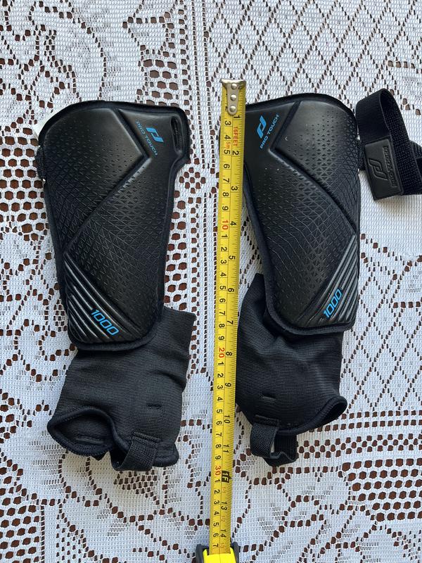 Чорні щитки для гомілок для спорту від Pro Touch (розмір. Довжина. 20 см. Ш. 10 см) Це футбольні щитки Pro Touch Force 1000 HS. Бренд: Pro Touch Модель: Force 1000 HS Колір: чорний із синіми акцентами Особливість: інтегрований захист щиколотки Матеріал: синтетичні матеріали та текстиль Додаткові виміри, питання в дірект Якщо є Дефекти все на фото