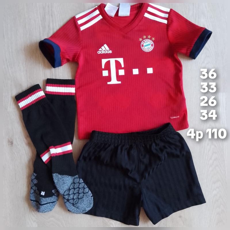 Футбольная форма Бавария Замеры: длина футболки 36 по груди 33 длина шорт 26 по бедрах 34 Опрятная, без пятен, зацепок и затяжек. Вещи не родные, подбирал