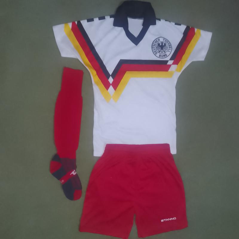 Футбольная форма Германия на очень худих футболиста Замеры: длина футболки 60 по груди 40 длина шорт 37 по бедрах 45