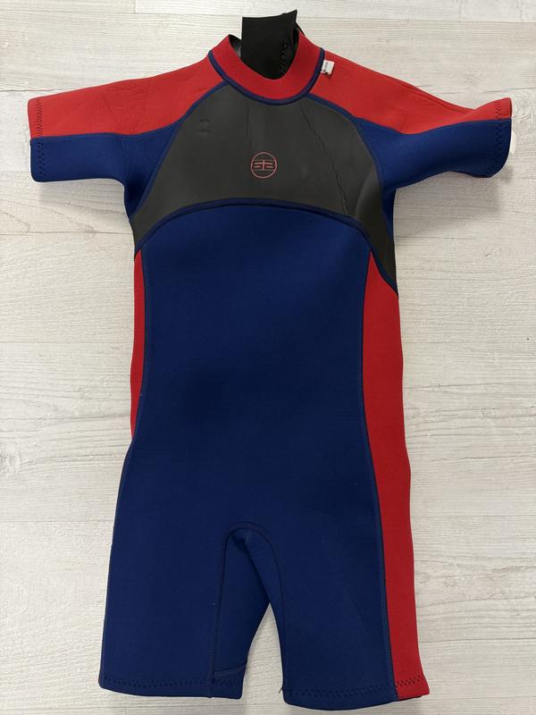 Вік: 9-10 років Зріст: 132-140 см Напівобхват грудей: 31 см Напівобхват бедра: 32 см Від плеча до між ніг: 59 см Довжина костюму від плеча до низу: 68 см Товщина: 3 мм Вартість: 450 грн