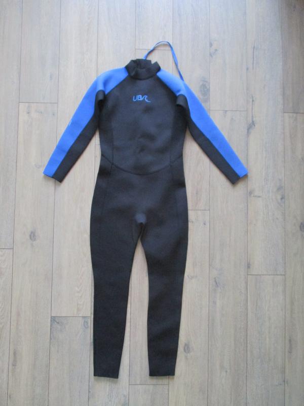 Длина от плеча до паха 66,5 см полуобхват груди 39 см, тянется до 42 см полуобхват талии 34 см, тянется до 37 см полуобхват бедер 39,5 см, тянется до 43 см длина от паха 64 см длина рукава от воротника 58 см товщина неопрену 2 мм Цвет черный с синим Есть пару пятен (на фото). Возможно краска. Во всём остальном состояние великолепен.