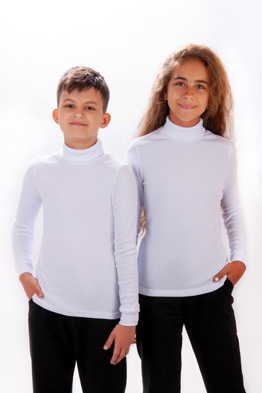 ‼️доставки через шафу немає‼️ Водолазка з білого, приємного до тіла трикотажу. Кочкорс (рубчик) - це трикотажне полотно, яке має вив'язану фактуру англійської гумки 2x2, 3x3. Тканина еластична, дуже добре тримає форму. 134 р 265 грн 140 р 275 грн 146 р 285 грн 152 р 295 грн 158 р 305 грн 164 р 315 грн Полотно: рубчик. Склад: 95% бавовна, 5% еластан.