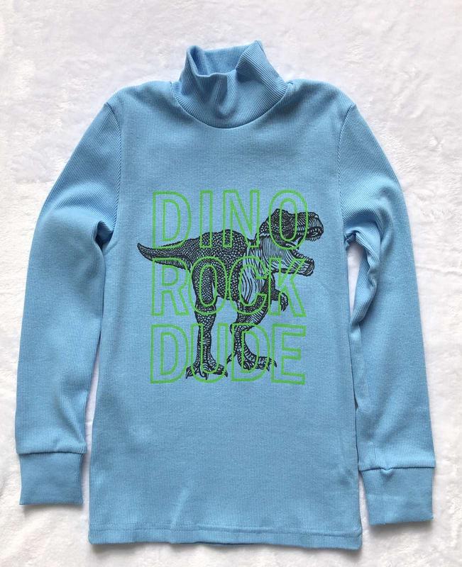 Гольфы для парней в мелкий рубчик, с принтом динозавра. Гольф на стойочке с манжетами на рукавах. Состав: 95% бавовна 5% еластан