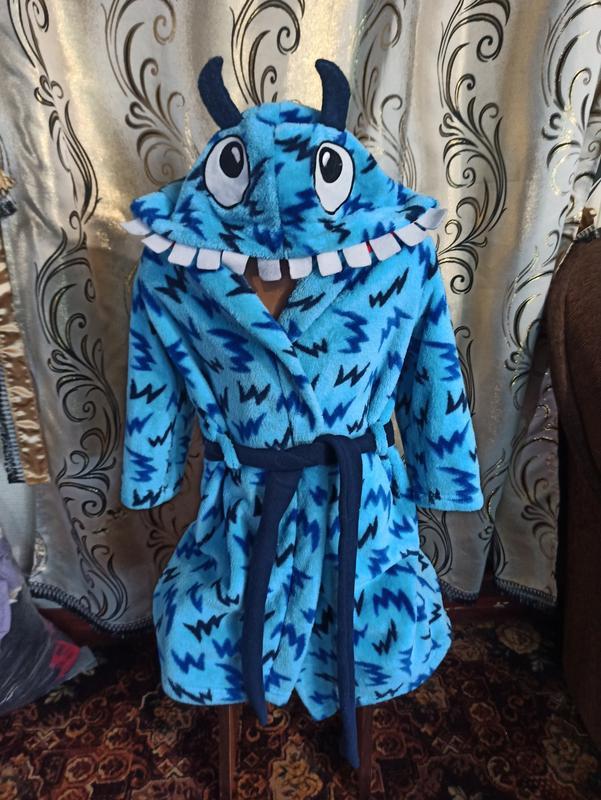 Теплий халат для хлопчика H&M. Розмір 98-104. Заміри: плечі 35 см, ПОГ 41 см, ПОТ 41 см, ПОБ 43 см, довжина рукава 33 см, довжина 68 см Тканина - велсофт. Склад: 100% полиестер. Пояс не рідний. В дуже хорошому стані