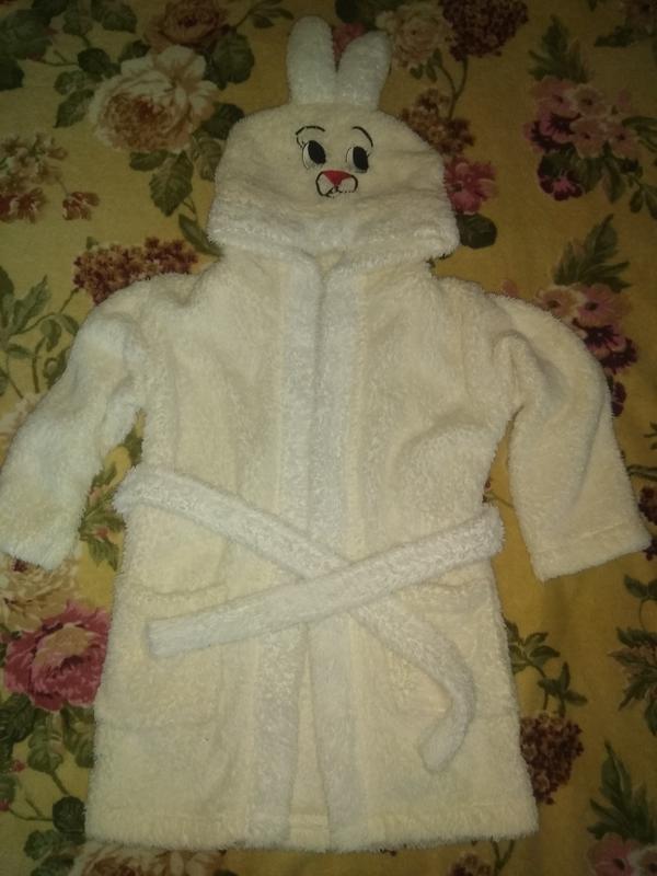 Теплий халатик, м'якенький. Є невелика плямка біля карману, можливо відіпреться. Заміри надам за потреби.