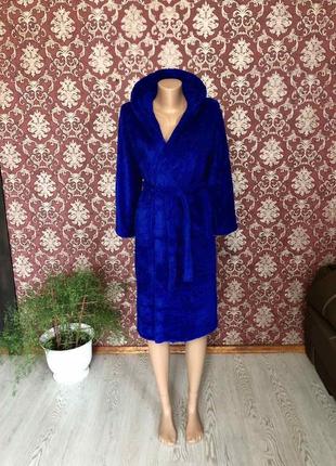 Теплий махровий халатик на запах кишенями та Пояском!💙 Махра м’ягенька та ніжна! Довжина по спинці 85 см Розмір 40(підліток)