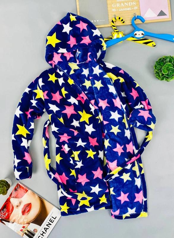 Халат - дуже зручний і універсальний домашній одяг, який відмінно підходить для повсякденного носіння. Полотно виготовлене із високоякісної махри неймовірно м'яке та приємне до тіла. Халат виконаний із затишним капюшоном з двома карманами по переду в комплекті йде пояс. Розміри 92-104 см 104-110см 110-116 см 116-128 см