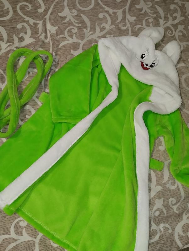 Халат приємний на дотик,в ідеальному стані. Користувалися мало поскільки швидко виросли. Підійде на 3-4 роки. При потребі скину заміри
