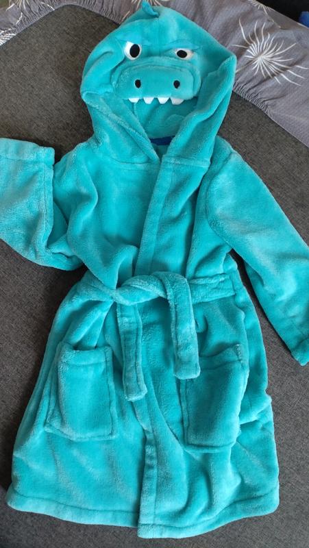 Мягёсенький и теплый,есть 2 кармашка,поясок вшитый (не теряется), сзади присборено резинкой,глубокий капюшон Стан - идеальный