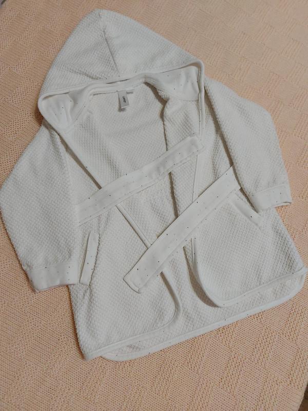 Замечательный халат для очаровательного малыша от luma на 74-80 см, визуально больший Длина рукава 32 см Ширина спинки ( под рукавами) 34 см Длина изделия 47 см 100% катон Цена указана без курса, если через шкаф то +15%