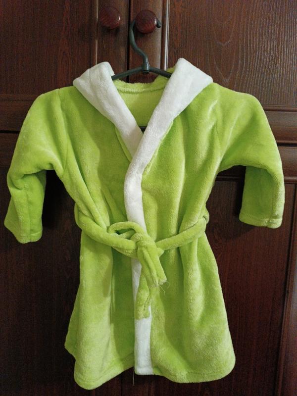 Детский халатик, подойдет для мальчиков, и девочек. Яркий, мягкий и очень приятный на ощупь.Стан нового. Размер не указан, примерно от 10 месяцев до трех лет. Замеры: длина -55 плечи-30 длина рукава -29 полная ширина груди-85 повна ширина по низу-94 длина пояса-111 ❗❗❗АКЦИЯ❗❗❗К концу месяца распродаж, не упустите возможность, присматривать за выгодной ценой.