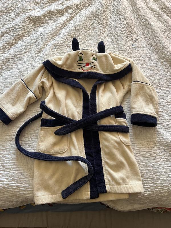 Продам халат « дракончик» в отличном состоянии 110 р плюшевый, на поясе, а с зади на утяжке. Также цепляется хвостик дракона на липучку. На ребенке смотреть очень стильно Второй халат «котик» - также в отличном состоянии, 110 р махровый, плотный и очень приятный на ощупь, отлично впитывает влагу после ванны или бассейна, с уда есть хвост, виден на фото. Цена за один халат 420 грн