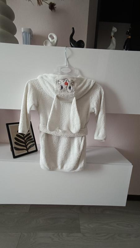 Халатик,з капюшоном зайчик 🐰🐰🐰 Производитель Bembi Украина Состояние хорошее!👍 Цвет не чисто белый,сербируемый! Замеры смотрите на фото Рекомендую!🫶❤️ Доставка: Укрпошта,Нова пошта Meest. Оплата: на карту С безопасной оплатой не работаю. Товар обмена и возврату не подлежит. Пожалуйста обдумано делайте покупки) С удовольствием ответь на вопросы)
