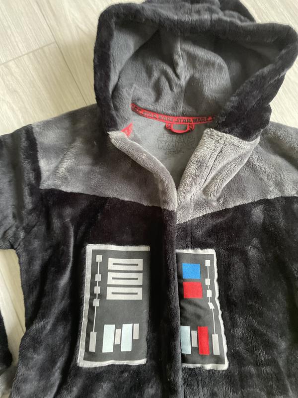 Дитячий халат Star Wars “Дарт Вейдер” М’який та теплий халат із капюшоном у стилі Дарт Вейдера. Виконаний із приємного на дотик плюшевого матеріалу, з поясом для зручної посадки. Декорований тематичними елементами “Зоряних війн”, включаючи світловий меч та панель на грудях. Ідеально підійде для маленьких фанатів Star