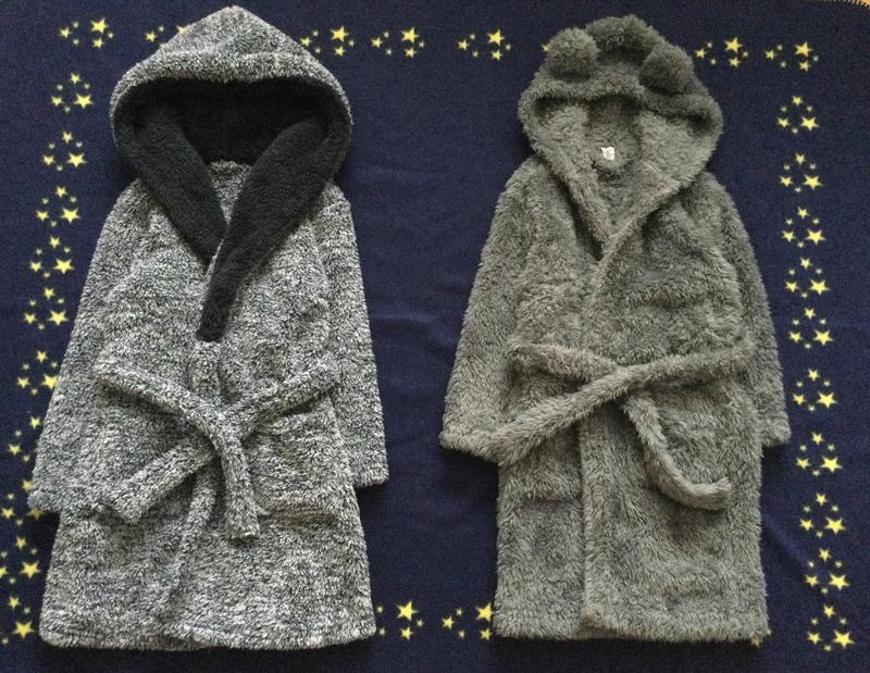 7-8 рок Nutmeg. флисовый халат банный, теплый. на море или в бассейн. Стан нового, следов носки нет, завязывается на талии пояском. есть карманы. Серый с ушками длина 75; рукав от ворота 52 Сине-Серый длина 74; рукав от ворота 52 по 199