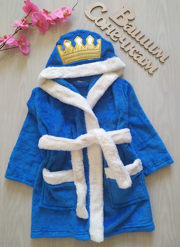 380 грн Шикарний махровий халат Турція якість відмінна РЕКОМЕНДУЄМО! рвана махра турецька -тканина груба і дуже тепла. колір синій із білою окантовкою. на капішоні золота корона еко кожа р 4-6 -1шт Заміри р4-6: довжина 67 см, рукав 39
