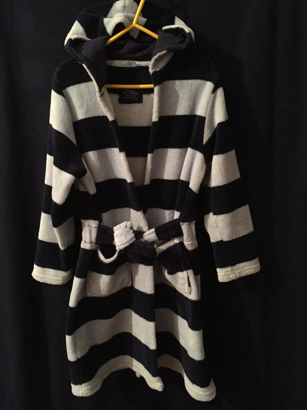 Флисовый полосатый мальчуковый халат с капюшоном Дл рук-41,дл по спине-70см