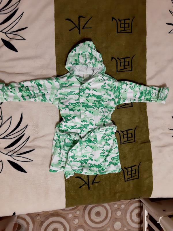После купания Халатик.Без дефектов.Застегиваеться на шее на пуговичку.Есть поясок.Размер на фото.Пишите,отвечу на все вопросы.